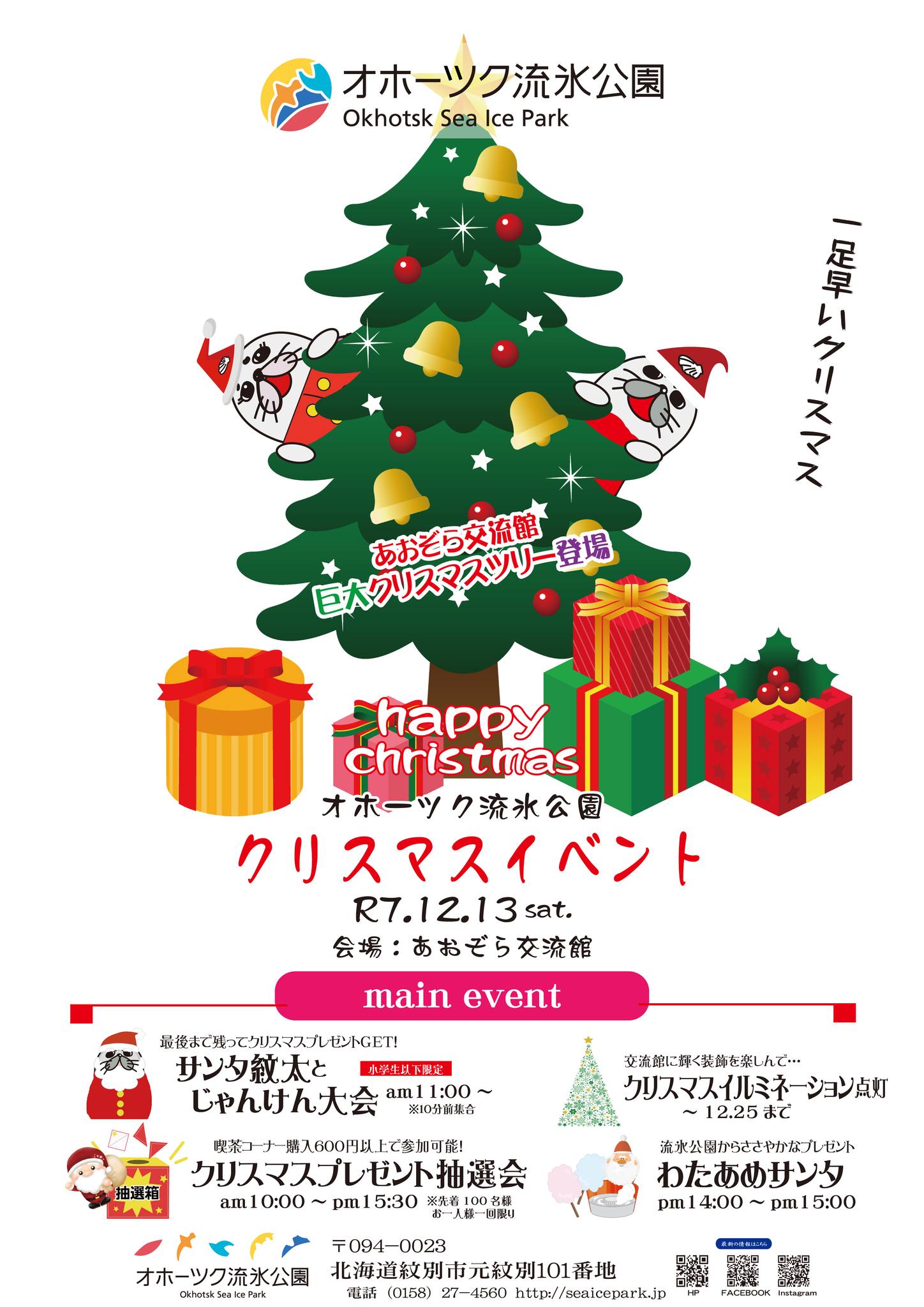 オホーツク流氷公園の「クリスマスイベント」を12月13日(土)に開催します。